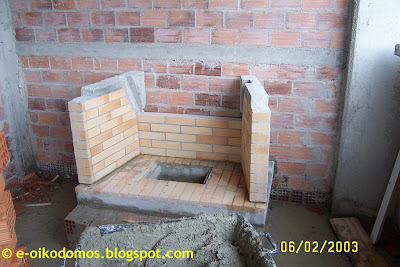 τεσσάρων προκατασκευασμένων τζακιών, δύο γωνιακών και δυο μεσαίων, σε δύο